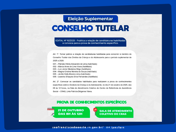 #ConselhoTutelar #SãoFranciscoDoOeste #AssistênciaSocial #CMDCA #DireitosDaCriança #Eleições2025