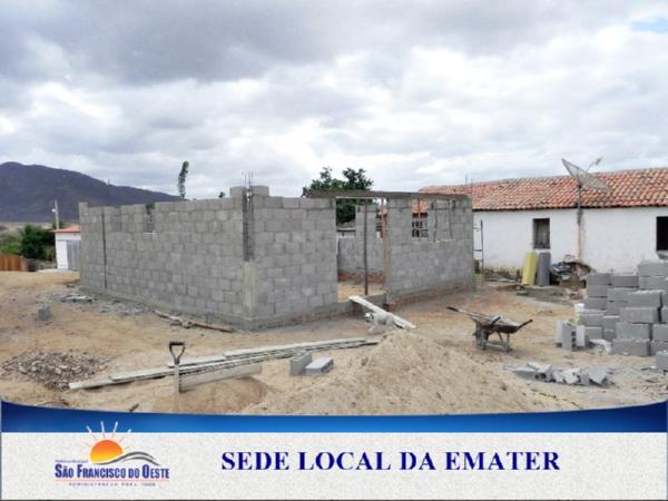 O Instituto de Assistência Técnica e Extensão Rural EMATER, vinculada à Secretaria de Estado da Agricultura, da Pecuária e da Pesca do Rio Grande do Norte, está construindo em parceria com o MDA Ministério do Desenvolvimento Agrário e com o apoio da Prefeitura Municipal, sua Sede própria no município de São Francisco do Oeste.
